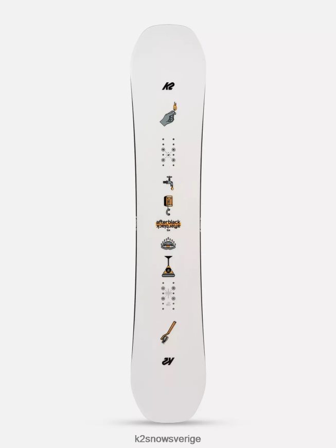 vi har använt en beprövad konstruktions- och designfilosofi och lyssnat på våra lagförare för att sammanföra den helt nya k2 afterblack twin tip snowboarden. Team ryttare Mark Wilson och Justin Phipps vägde in tungt på spets- och svansform, sidoskärningsradie, blandningszon och camberprofil. efter rundor av tester på backen och på gatorna skrev vi på den prickade linjen på den andra inkarnationen av k2 afterblack.